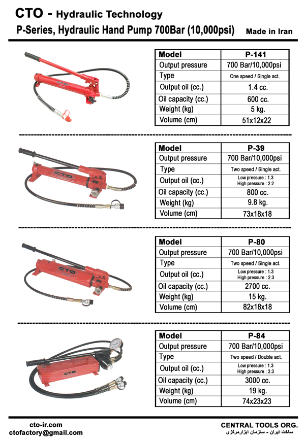 انواع پمپ های هیدرولیک دستی 700 بار فشار