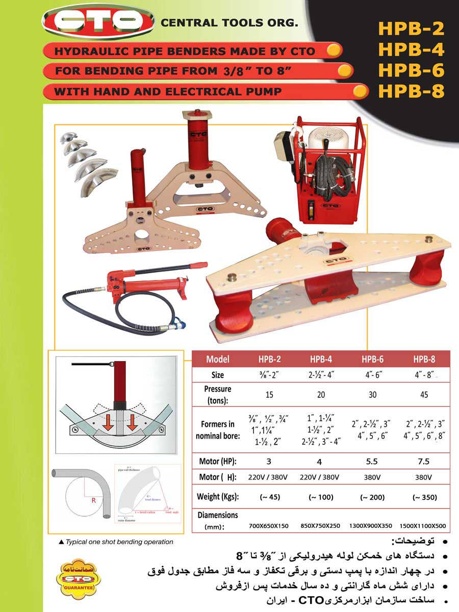 - مدل HPB-2E جهت خم لوله های : 2/1 ، 4/3 ، 1 ، 4/1-1 ، 2/1-1 ، 2 اینچ