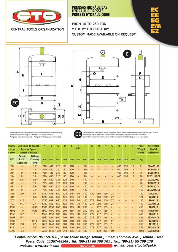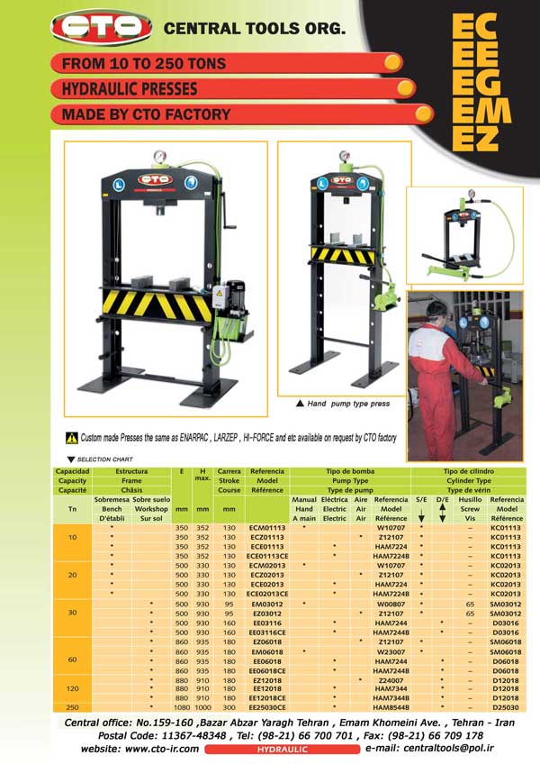 انواع پرسهای هیدرولیکی دروازه ای 700 بار 10 تا 250 تن با ملزومات مربوطه