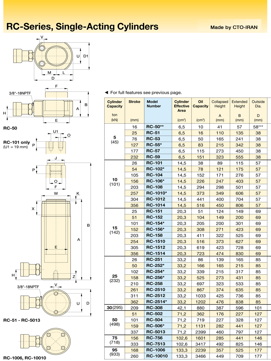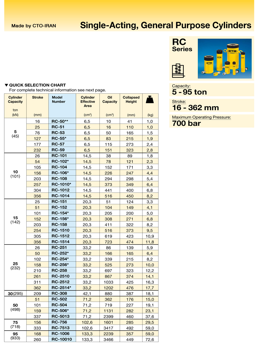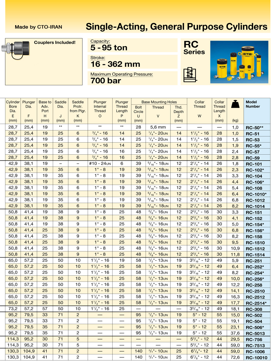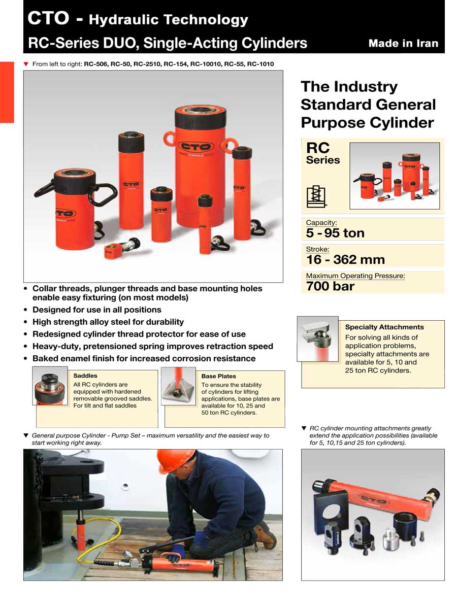 - ساخت انواع جک و سیلندر هیدرولیک استاندارد سری RC جهت مصارف عمومی