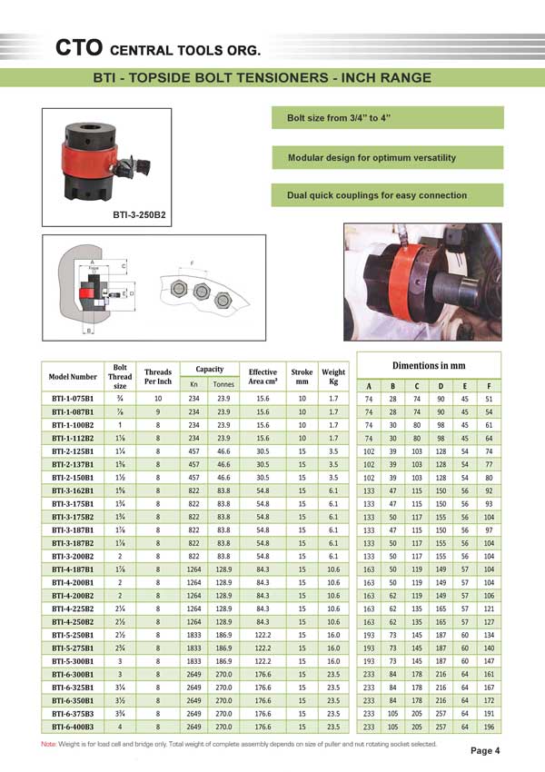 انواع تنشنر بولت های هیدرولیک
