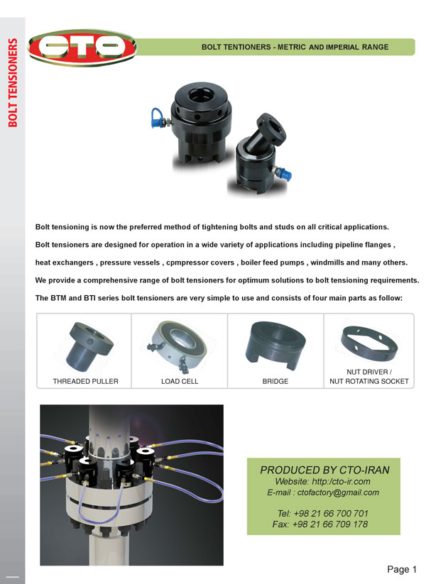 - ساخت انواع بولت تنشنر های قابل استفاده در مکانهای اتصالات بولتینگ مانند نیروگاه ها ، پالایشگاه ها ، صنایع نفت ، گاز، کارخانجات سیمان و غیره