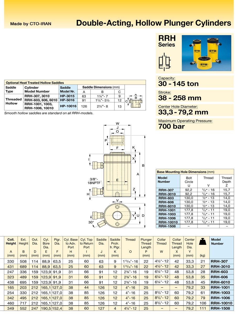 - ساخت انواع جک و سلیندرهای هیدرولیک سوراخدار دوطرفه 700 بار فشار