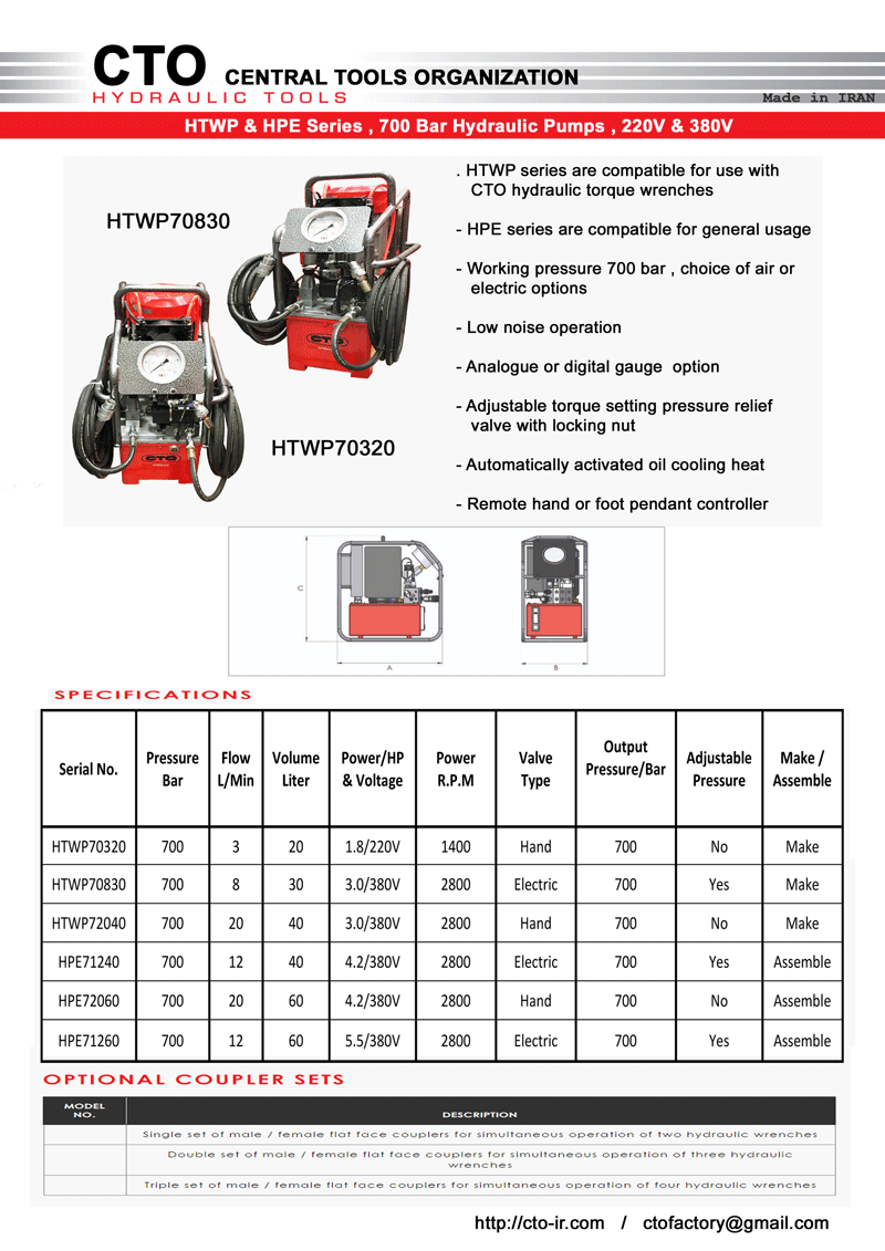 HTWP & HPE پاورپک یا پمپ های برقی هیدرولیک 700بارفشار